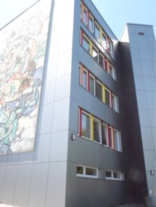 Aus einer ehemaligen Dresdener Schokoladenfabrik wurde ein modernes Familienzentrum, das vom Architekturbüro Alexander Poetzsch Architekturen gestaltet wurde. Dabei wurden historische Elemente wie Mauerwerk und Fundament erhalten, um nachhaltig zu sanieren und kosteneffizient zu bauen.